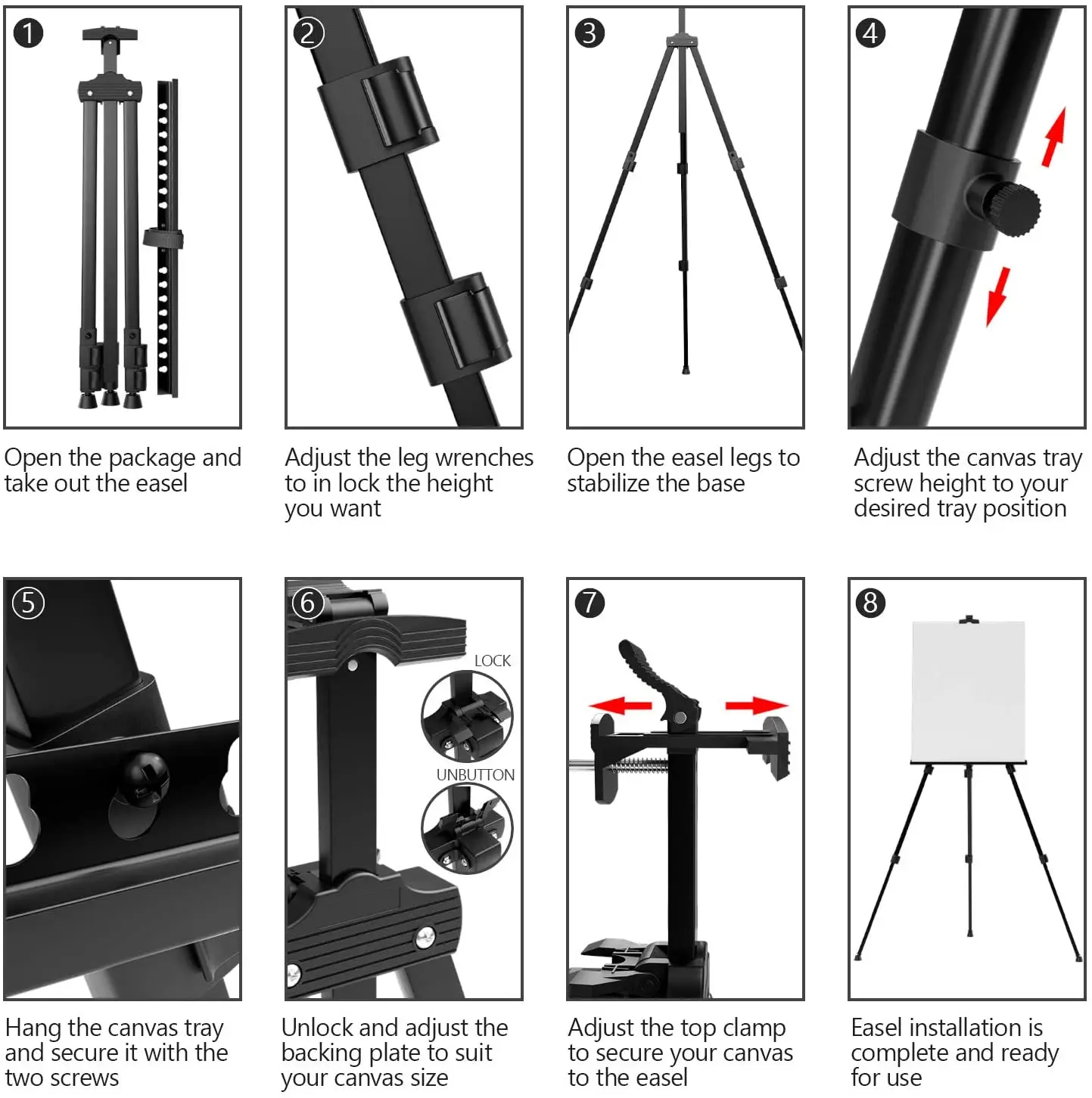 Высота и угол: 21 "до 66"-идеально подходит для напольной стойки или настольного дисплея, складывается только до 21 "для удобного хранения и транспортировки, легко поворачивается ручки для быстрой регулировки высоты/угла Размер холста: вмещает панели или холсты до 33 "h x 1,2" d и может вмещать до 25 фунтов, пружинный верхний зажим фиксирует холсты на месте Подходит для разного пола: регулируемые ножки идеально подходят для использования на местах для регулировки неровной поверхности, нескользящая основа обеспечивает более высокую производительность захвата, легко носить с собой с прочной сумкой для переноски на открытом воздухе Усиленный дизайн: хорошая устойчивость к ветру, t-знак мольберт стенд изготовлен из очень толстого легкого алюминиевого металла, чтобы быть более стабильным, бесплатная сумка для переноски (с плечевым ремнем) для легкой транспортировки T-SIGN профессиональное послепродажное обслуживание: в процессе получения или использования продукта, если у вас возникли какие-либо проблемы, пожалуйста, свяжитесь с нами. T-SIGN всегда уделяет внимание качеству продукции.