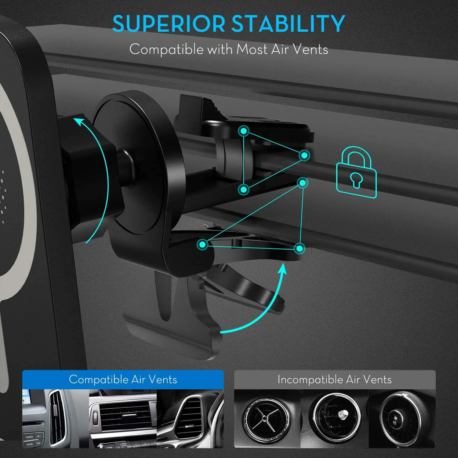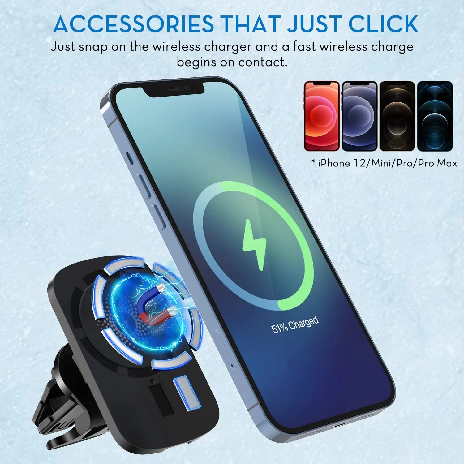 Магнитное Беспроводное зарядное устройство с автоматическим выравниванием-Встроенные идеально выровненные магниты, зарядное устройство прикрепится к вашему телефону одним щелчком, что делает беспроводную зарядку оснасткой. Это суперэффективно для отличного срока службы батареи. Магнитное выравнивание применимо только к iPhone 12 серии Усовершенствованная технология зарядки-время индукции 0,01 секунд. Поставляется с кабелем type-C для подключения к адаптеру, заряжает ваши устройства быстрее и стабильнее. Поддержка быстрой зарядки макс. 15 Вт для iphone 12 серии. Обнаружение посторонних предметов-когда между беспроводным зарядным устройством и телефоном есть металлическое вещество, зарядное устройство прекратит зарядку. Эффективно Избегайте повреждений мобильный телефон, вызванных высокой температурой металла Складная конструкция-зарядное устройство поддерживает зарядку через магнитные чехлы для телефонов. Обратите внимание, что металлические Чехлы, внешние крепления, такие как кредитные карты, захваты, Неровная поверхность и подставки, будут мешать зарядке. Настоятельно рекомендуется использовать Магнитный чехол для телефона Конструкция 2-в-1-сочетает в себе Беспроводное зарядное устройство Qi и держатель сотового телефона для автомобиля, что обеспечивает безопасную работу без помощи рук. Держите подальше от запутанных фиксирующих шнуров или кабелей. Держатель для сотового телефона подходит для установки на лобовое стекло автомобиля, вентиляционное отверстие делает GPS и телефонный звонок более удобными 2 в 1 дизайн 15 Вт Qi Быстрая зарядка магнитное беспроводное автомобильное зарядное устройство автомобильное крепление держатель телефона на вентиляции Магнитное выравнивание Благодаря встроенным магнитам, которые идеально сочетаются с iPhone 12 серии, это автомобильное крепление для телефона обеспечивает волшебный опыт крепления и более быструю беспроводную зарядку каждый раз. Когда пришло время зарядки, Просто прикрепите телефон к беспроводной автомобильной зарядке. Быстрая зарядка Магнитная конструкция максимум 15 Вт позволяет, так что ваш телефон может быть точно выровнен по катушке зарядки и размещен на зарядной площадке для достижения более быстрой и стабильной зарядки. Обладая комплексной интеллектуальной технологией защиты, он обеспечивает такие функции, как контроль температуры, защита от перенапряжения и перегрузки по току, защита от короткого замыкания и обнаружение посторонних тел. Отличное притяжение Превосходный встроенный Магнит удерживает наше зарядное устройство на месте и предотвращает скольжение. Поместите мобильный телефон в центр зарядного устройства для наилучшего результата зарядки. Неизменный сигнал 5G Эта беспроводная зарядная панель разработана с учетом первой серии iPhone 5G. Благодаря фиксированной частоте во время зарядки сигнал 5G в вашем телефоне не будет мешать или прерываться. Технология Smart IC Когда мобильный телефон полностью заряжен, он автоматически переключается в режим непрерывного заряда без проблем с перезарядкой.