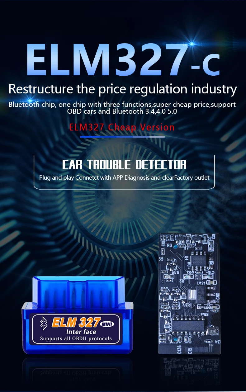 Небольшой размер OBD2 Thinmi ELM327 дешевая версия детектор неисправностей двигателя автомобиля V1.5 Поддержка всех протоколов диагностический инструмент elm327 obd2