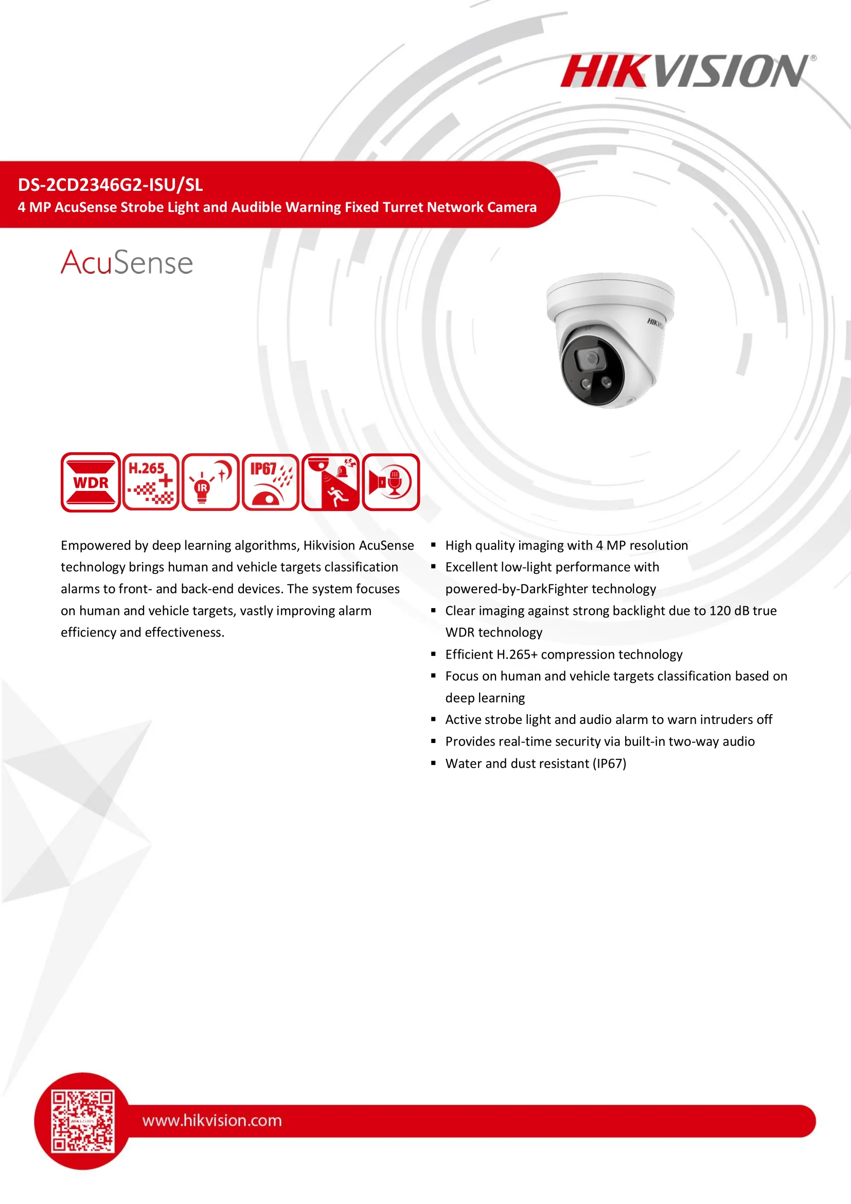 Оригинальная Сетевая камера Hikvision 4MP DS-2CD2346G2-ISU/SL POE IR Встроенный микрофон AcuSense IPC