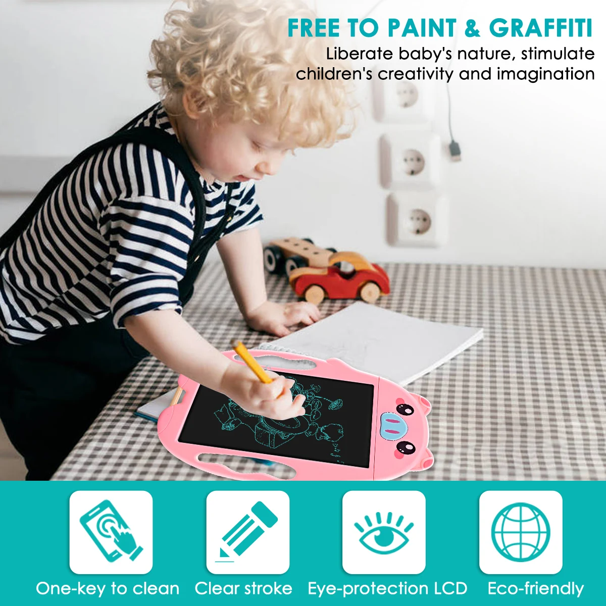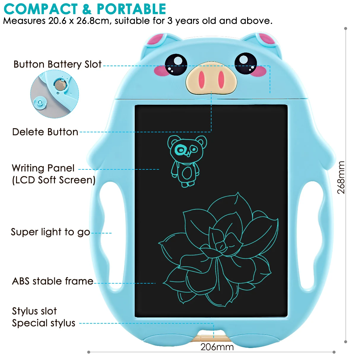 9 дюймов детская игрушка мультяшная свинья электронная LCD Doodle доска для рисования одной кнопкой для очистки для повторного использования блокнота