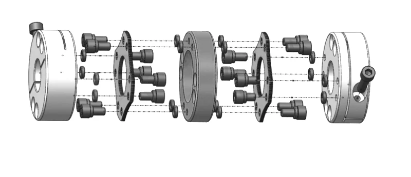 1. Состоит по крайней мере из одной диафрагмы и двух втулок вала. Запасной штифт диафрагмы крепится к втулке вала, так что он не будет ослабляться или вызвать обратную реакцию между диафрагмой и втулкой вала. 2. Есть также некоторые производители, которые обеспечивают две диафрагмы, а некоторые обеспечивают три диафрагмы, с одним или двумя жесткими элементами в середине, и две стороны соединены с валом рукава. Разница между одним мембранным соединением и двойным мембранным соединением заключается в способности обрабатывать различные отклонения. Ввиду сложного сгибания диафрагмы, одиночное мембранное соединение не подходит для эксцентричности. Двойная мембранная муфта может сгибаться в разных направлениях одновременно, чтобы компенсировать эксцентричность. 3. Небольшие жесткие муфты из алюминиевого сплава все чаще используются в области контроля движения.