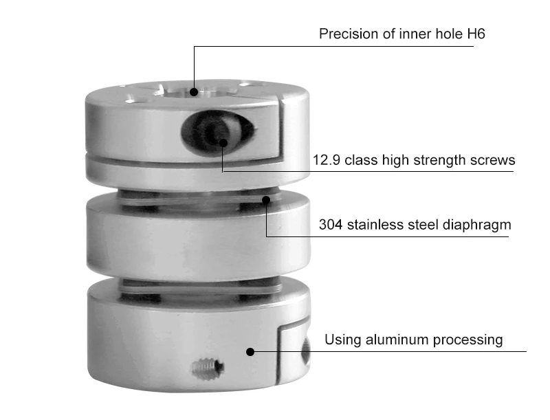 Предназначен для сервопривода и шагового двигателя без зазора вала и соединения втулки вала, подходит для положительного и отрицательного вращения диафрагмы из нержавеющей стали, хорошее сопротивление усталости, вы можете выбрать, есть ли у вас ключевой путь