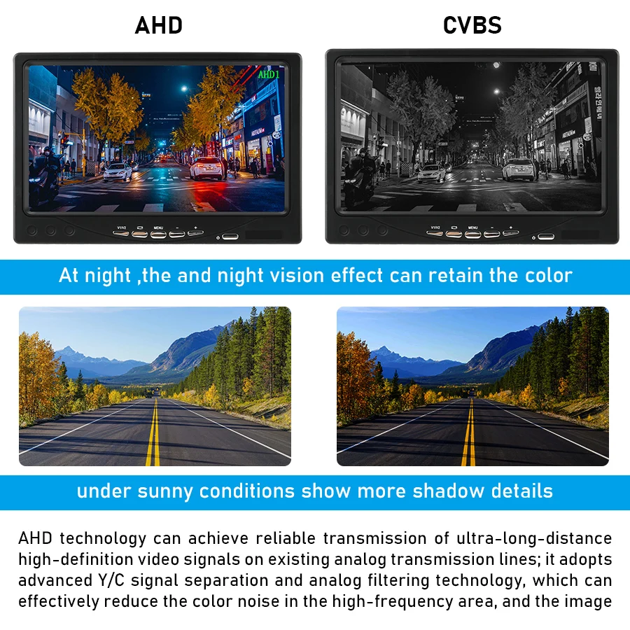 Технология AHD может обеспечить надежную передачу ультра-дальних видеосигналов высокой четкости по существующей технологии аналоговой фильтрации, которая может эффективно подавлять шум цвета в высокочастотной области и изображении.