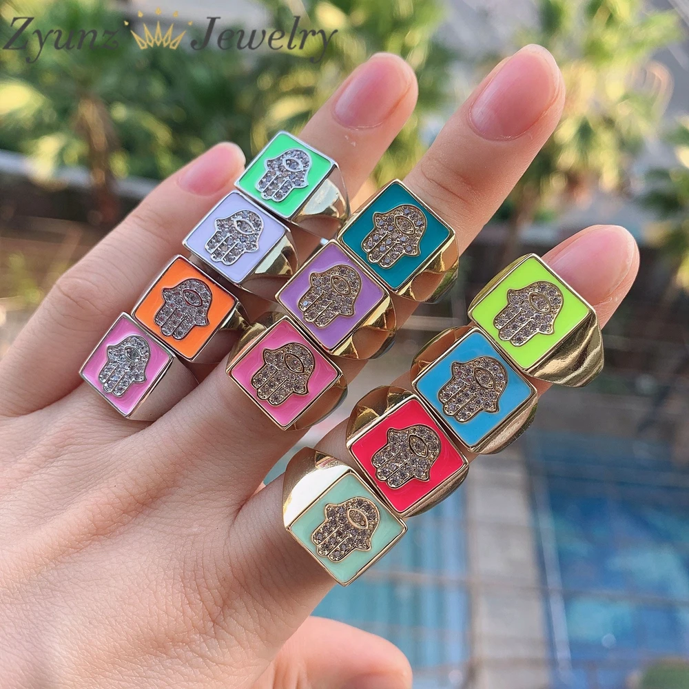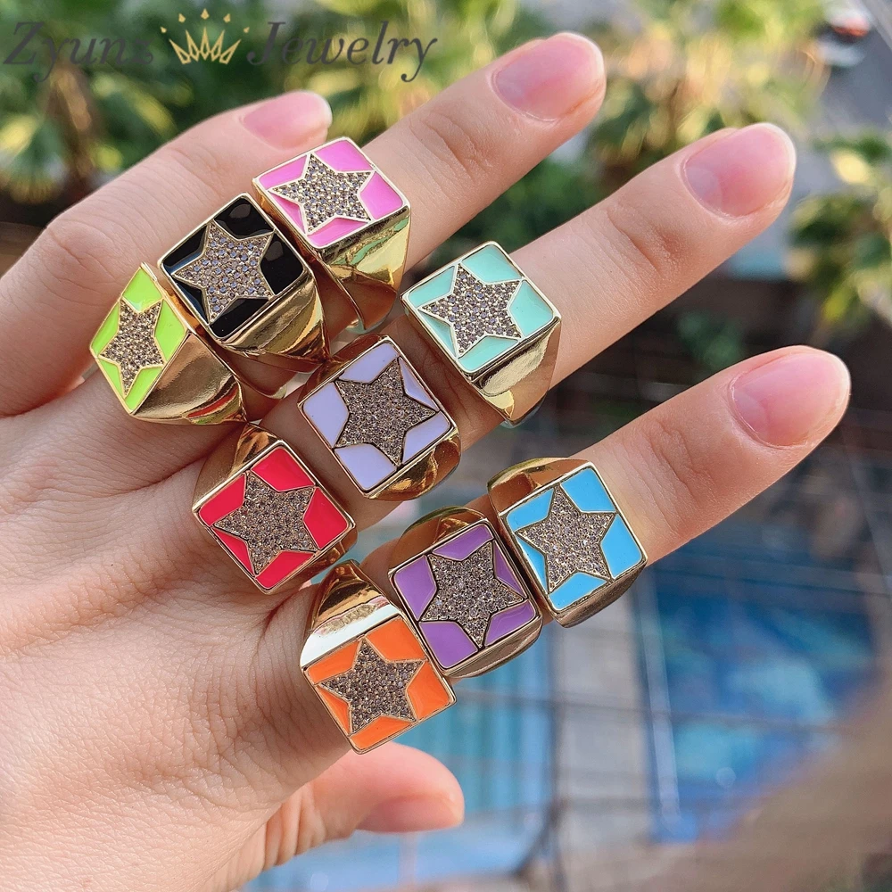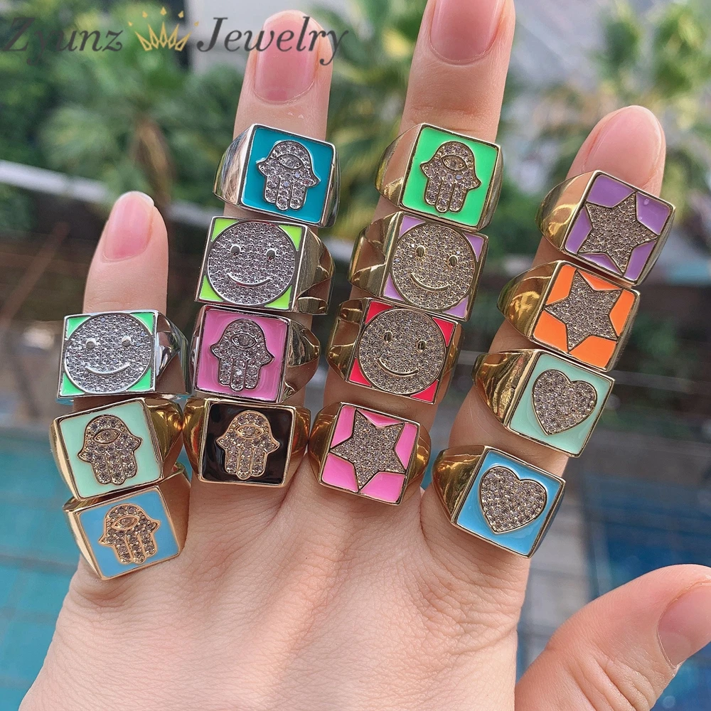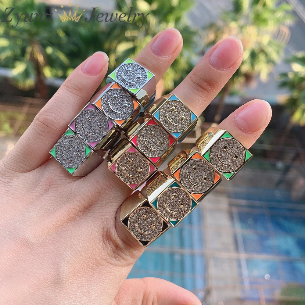 Женское кольцо с эмалью в стиле панк Happy Smile Face, винтажное Золотое геометрическое кольцо на палец с фианитом