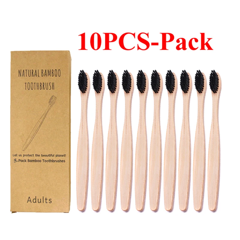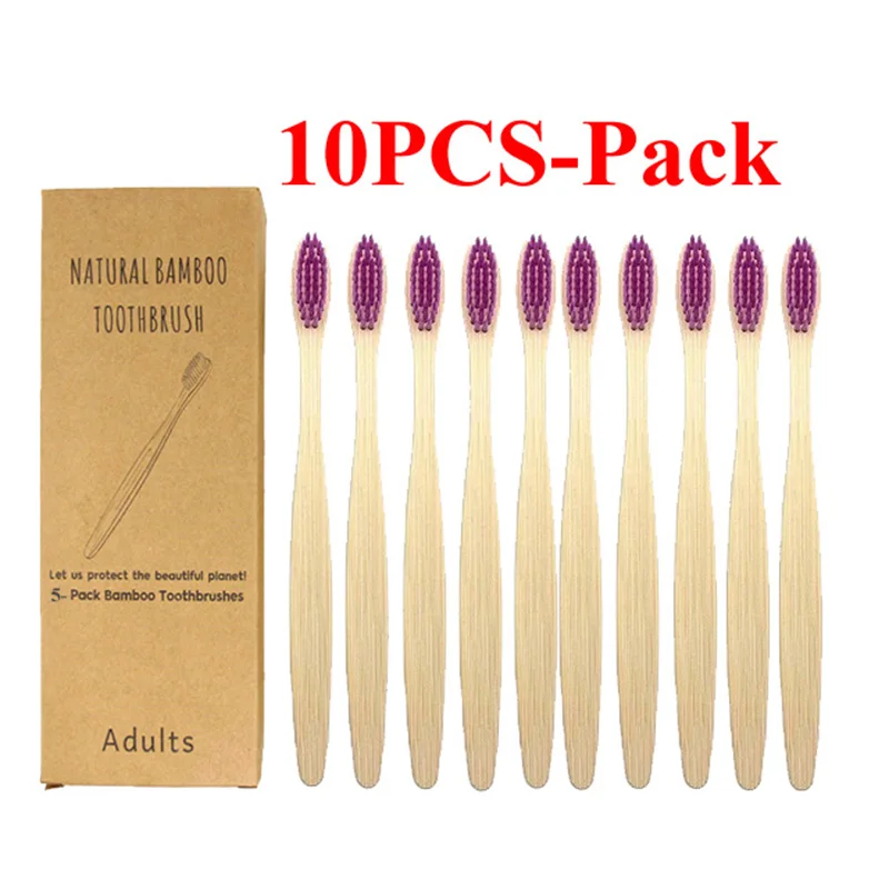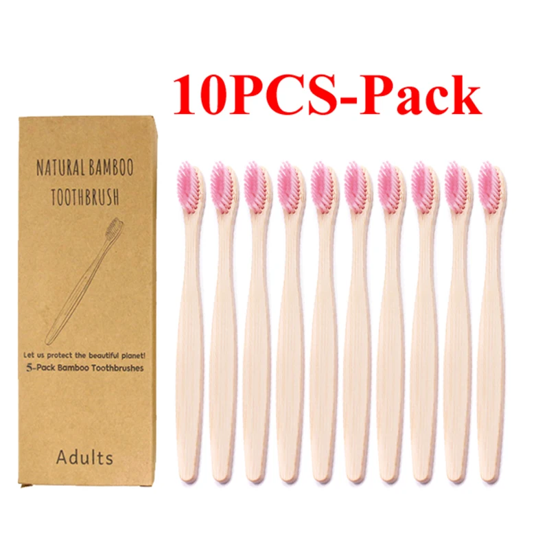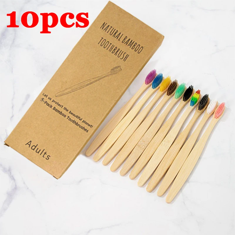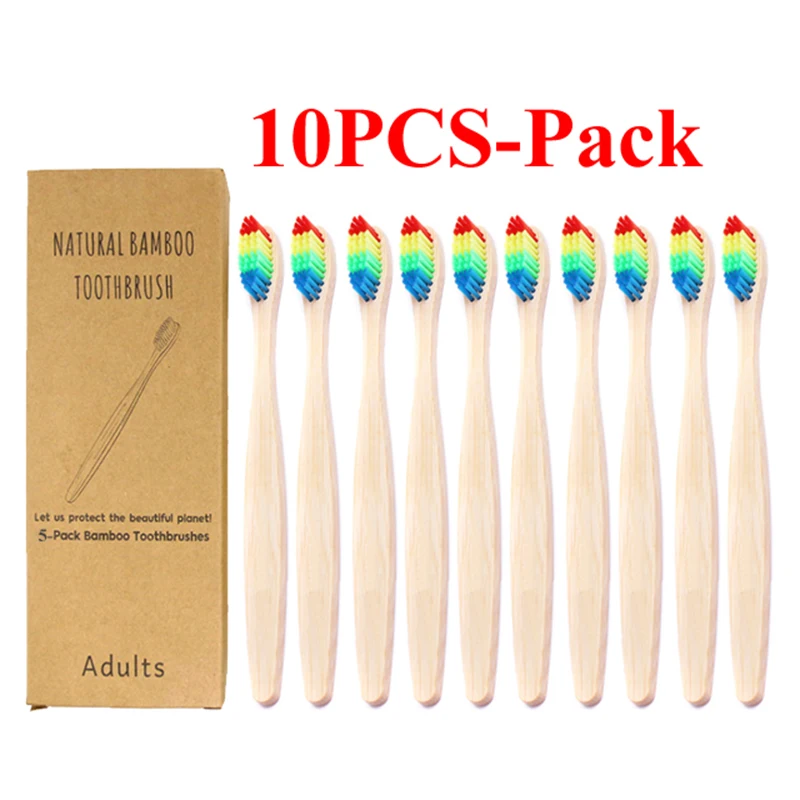 Биоразлагаемая Экологически чистая натуральная бамбуковая зубная щетка es BPA Free мягкая щетина Compostable, веганская Органическая многоразовая деревянная зубная щетка (10 упаковок)
