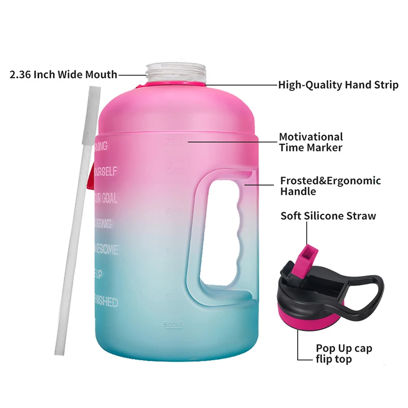 С уникальным вдохновляющим цитатом и маркер времени галлоновая бутылка для воды, эта бутылка отлично подходит для измерения ежедневного потребления воды, Напоминая вам оставаться увлажненным и пить достаточно воды в течение дня. Необходимо иметь для любых целей фитнеса, включая потеря веса, контроль аппетита и общее здоровье.