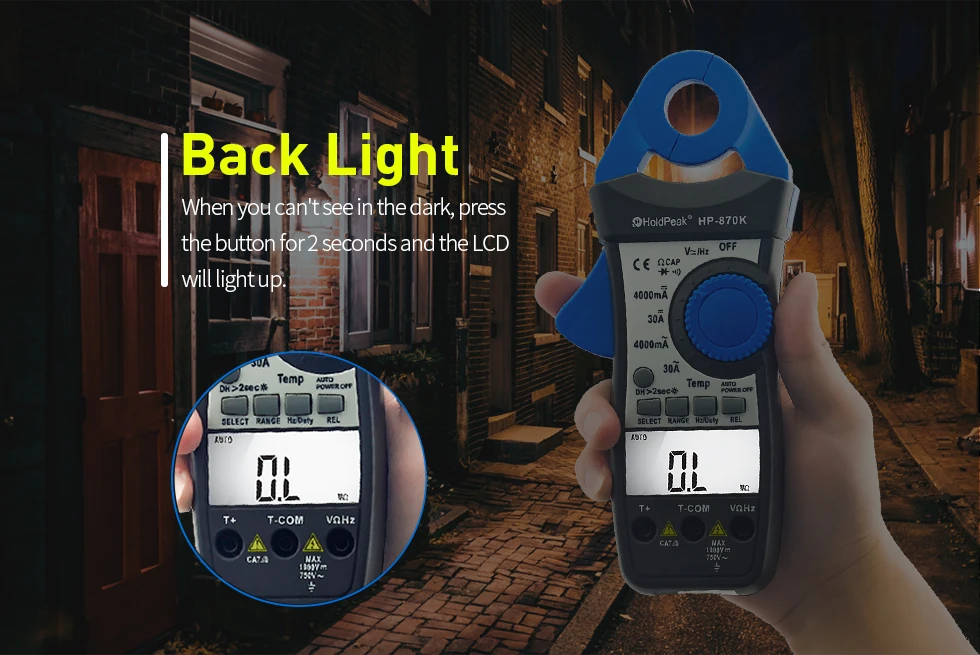 HP-870K измеритель имеет такие функции, как сохранение данных, подсветка и Измерение относительной величины.