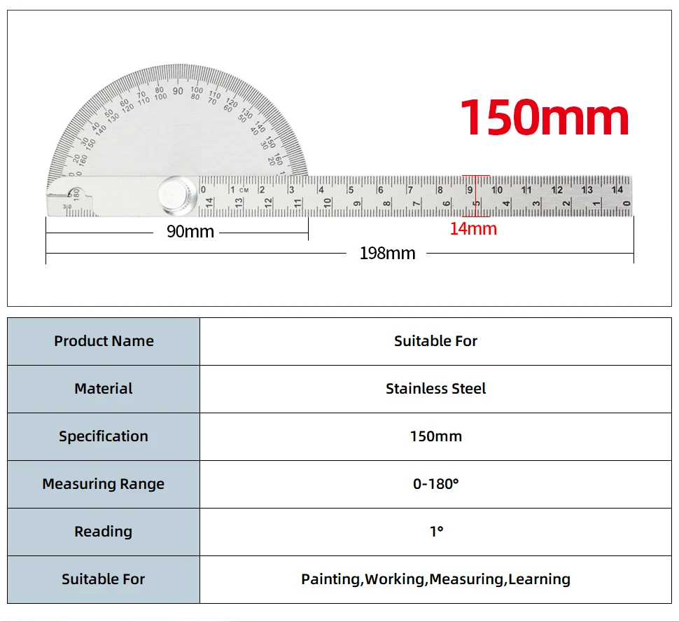 Примечание: это простой транспортир, а не точный измерительный инструмент. Погрешность измерения угла составляет ± 1 °. Если вы беспокоитесь о точности, пожалуйста, приобретите цифровой дисплей транспортира.