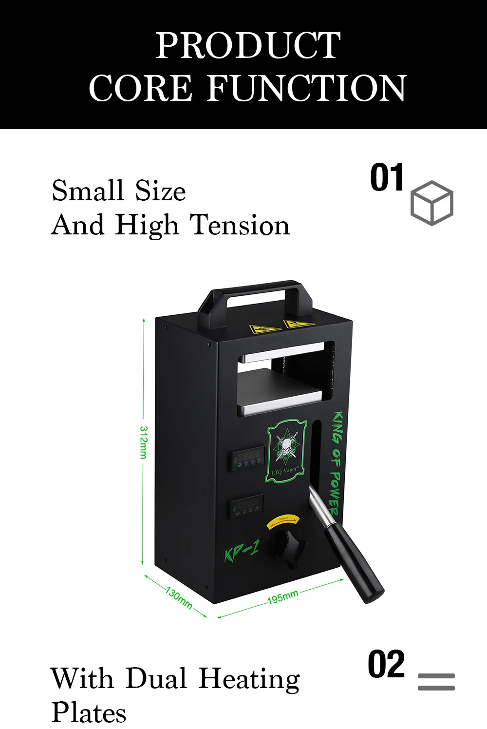 1. Горячая Распродажа и очень популярна среди клиентов. 2. 100% новый, изысканный дизайн. 3. Более плотная пластина, более прочная. 4. Простота в эксплуатации. 5. Подходит для многих видов волокнистого материала, специально для извлечения масла. • Цифровой таймер и регулятор температуры-заданное желаемое время и звуковой сигнал будут звучать, когда время будет завершено. Установите желаемую температуру (по Фаренгейту) и элемент перестанет нагреваться при достижении заданной температуры. • Нагревательные элементы-более толстая нагревательная пластина с более высокой температурой, чем у других поставщиков • Прочная металлическая структура-машина сверхмощная, коммерческая, супер стабильная и встроенная О давлении цифры говорят все!