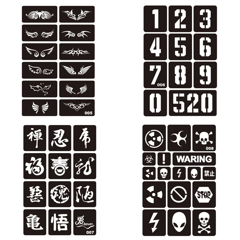 Трафарет для татуировок аэрография блеск трафаретов шаблоны для татуировок с цветами и цифрами