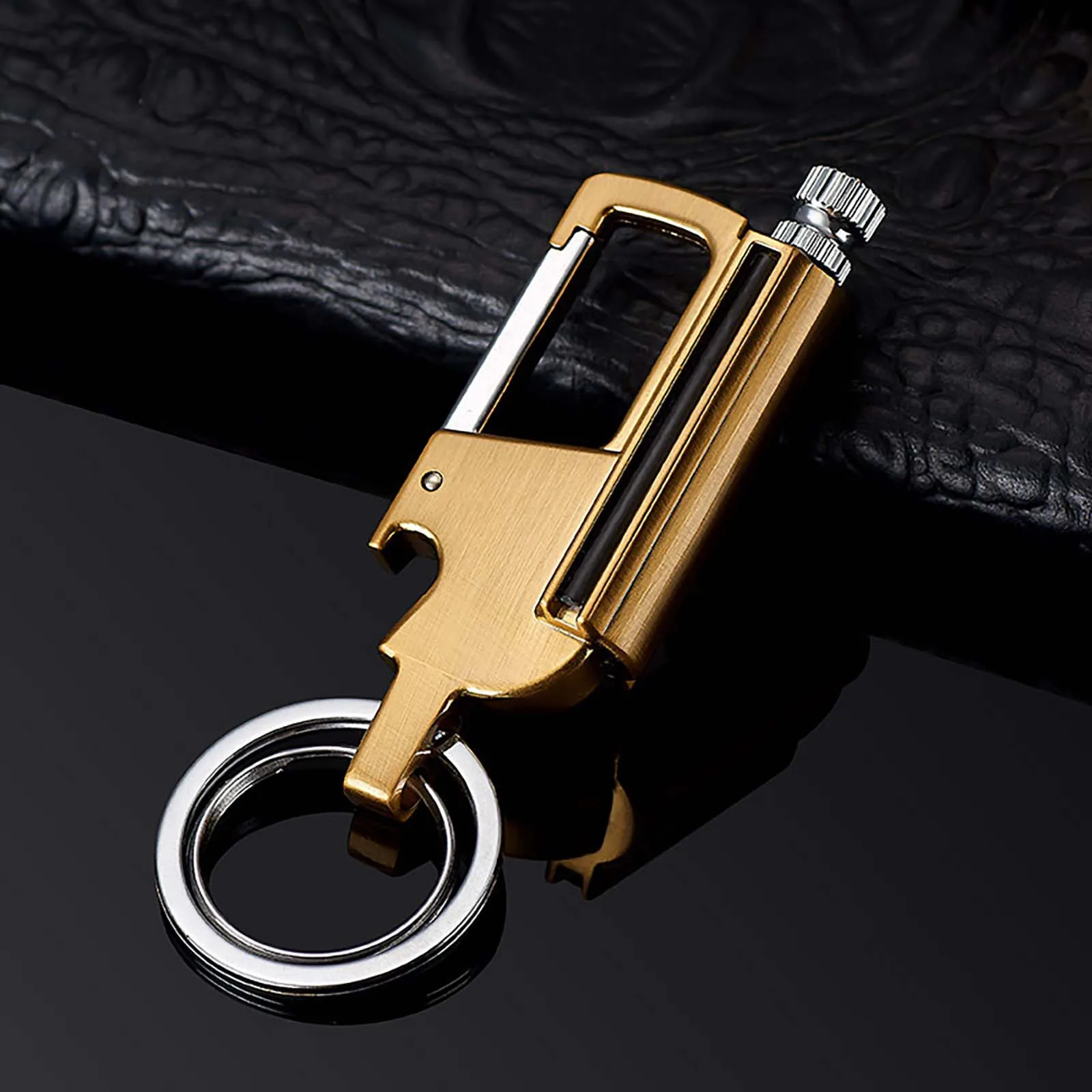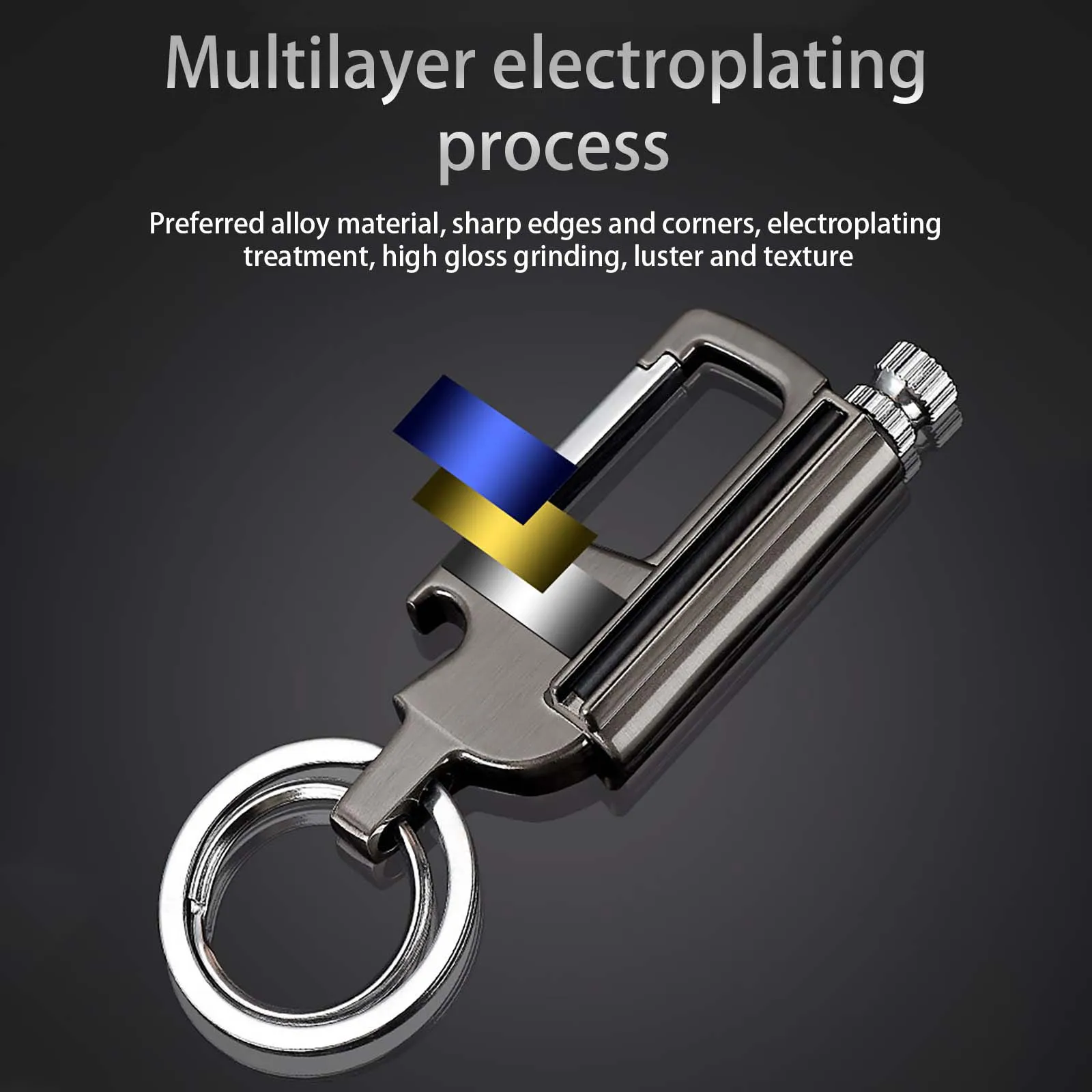 Оригинальный уникальный дизайн: многофункциональная цепочка для ключей, интегрированная с перманентной металлической зажигалкой, открывалкой для пивных бутылок и брелком. Очень важно иметь один инструмент для выживания для удержания ключей, обратной упаковки или более100% новый и высокий Качество