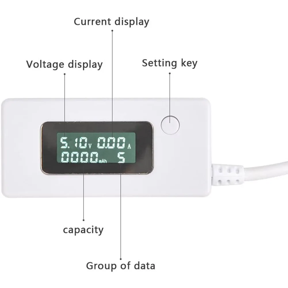 LCD Digital Display USB Power Meter Voltage Current Discharge Capacity Tester Electric Frequency Current Voltage Factor Meter