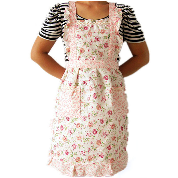 Женская домашняя кухня Кулинарный нагрудник Цветочный стиль Карманный Кружевной Фартук платье