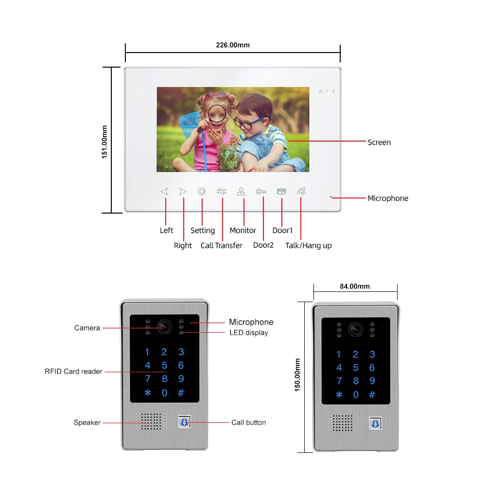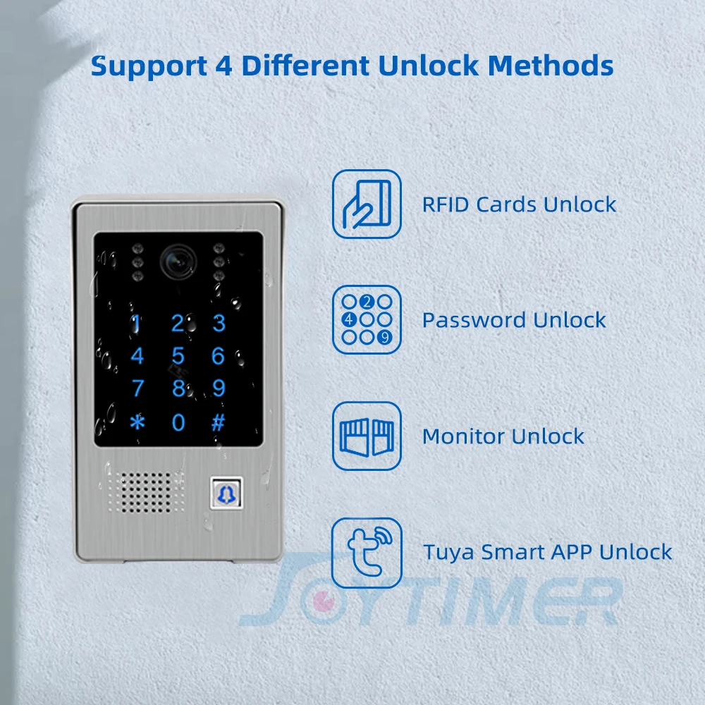 С помощью этой системы внутренней связи вы можете использовать карты, Pssword, монитор и телефон, чтобы разблокировать дверь, что будет более удобным!