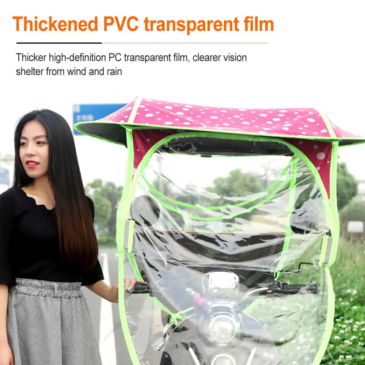 【Universal】 простой подходит для большинства мобильных скутеров, мотоциклов, велосипедов, внешних водонепроницаемых, внутренних тепловых отражающих покрытий, отражает тепло, длинную шляпу, решает прямой солнечный свет летом, эффективно предотвращает дождь, И позволяет избежать прозрачной пленки на передней части, покрытой капельками воды.