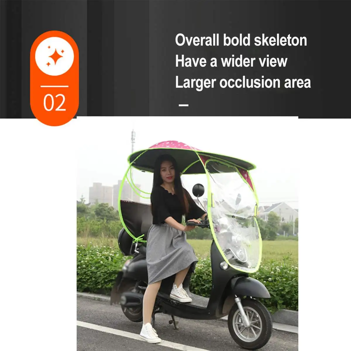 【Большая Блокировка 】водонепроницаемость снаружи и тепловое отражающее покрытие внутри для отражения тепла. Длинный передний щит, для решения летних солнечных лучей, что не видно.