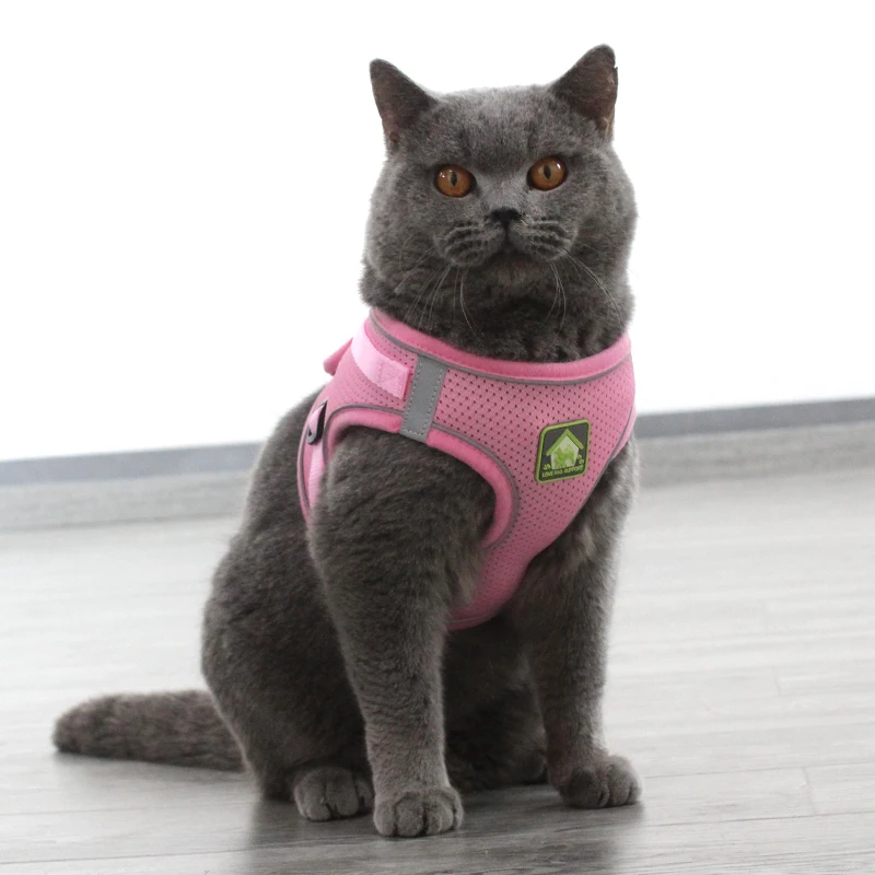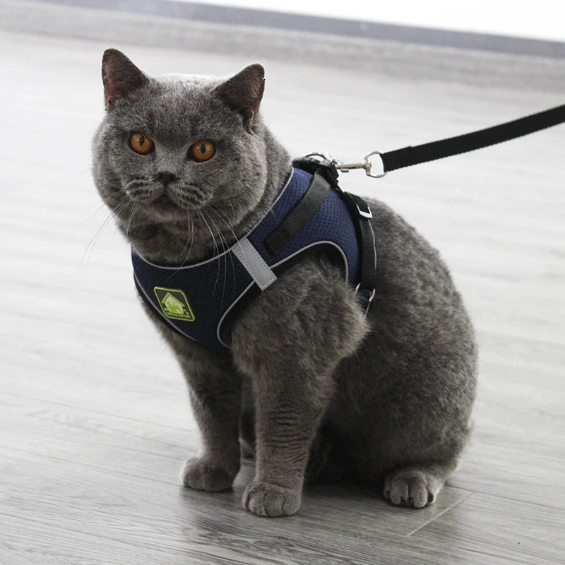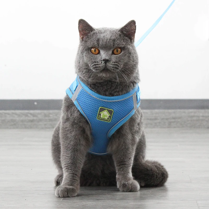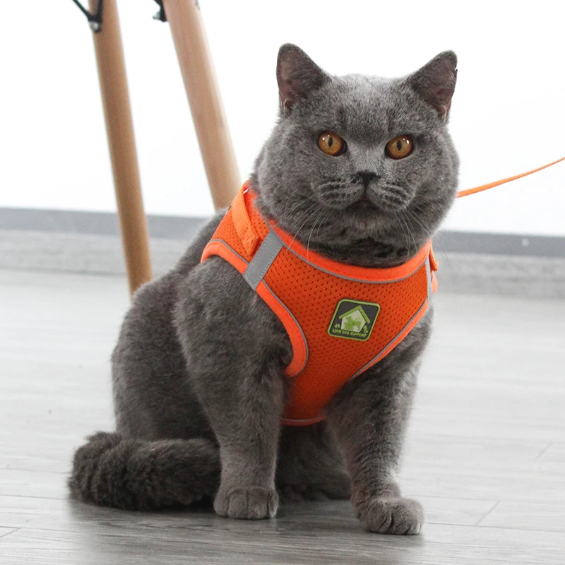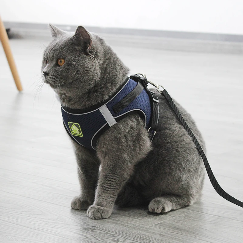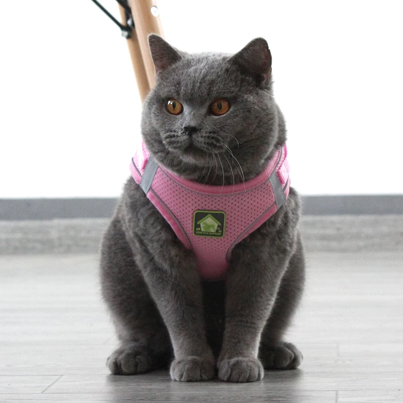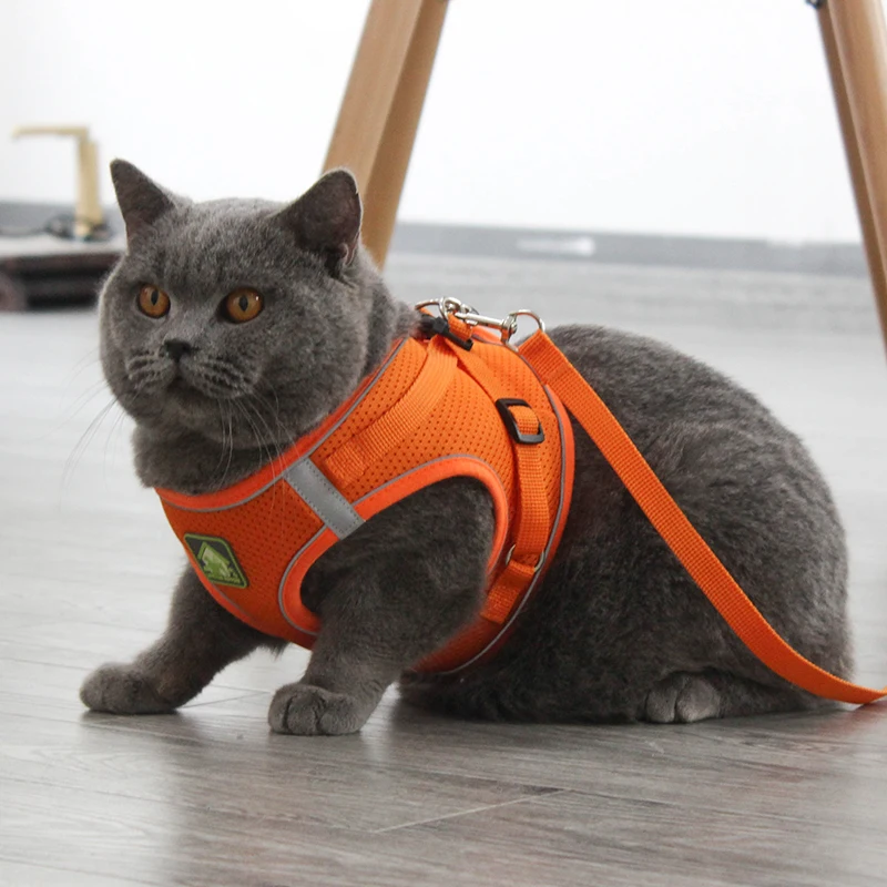 Светоотражающий ошейник для домашних животных, поводок для кошек, набор, дышащая сетка, жилет для щенков, регулируемая шлейка для питомцев, аксессуары для маленьких средних кошек