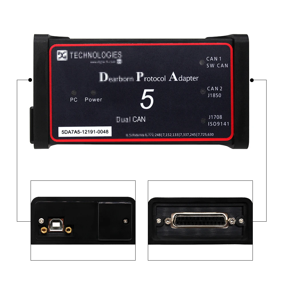 Dearborn Protocol Adapter 5-это proferssinal инструмент для обслуживания производителей коммерческих транспортных средств. Он охватывает все критические системы, включая двигатели, трансмиссии, предупреждающее устройство тормоза, комфорт, безопасность, выбросы, пневматическую подвеску, прицеп и техническое обслуживание, чтобы обеспечить глубину функциональности для каждого приложения. Он основан на технологии инструмента DS, он может использоваться для следующих аппаратных платформ: ПК, карманный ПК (КПК) или нетбук (UMPC, также известный как Ультра мобильный ПК), И предоставить информацию для клиентов, регулярно обновляя вспомогательное программное обеспечение.