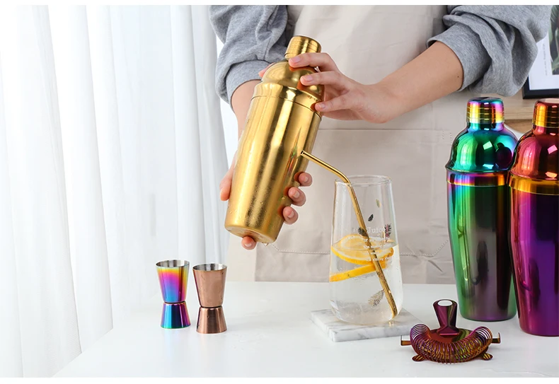 3 шт., набор для коктейлей из нержавеющей стали Rainbow Boston, 750 мл, шейкер для коктейлей с ситечком, мерный стакан бармена, набор инструментов для бара