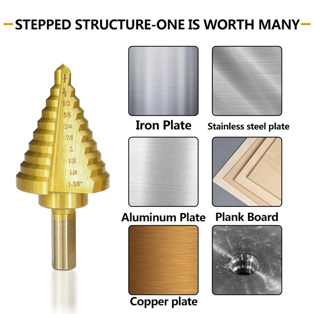 Новинка, 6 шт., ступенчатое сверло HSS с титановым покрытием, набор сверл с центральным перфорацией, набор инструментов для сверления отверстий, набор инструментов для сверления Pr
