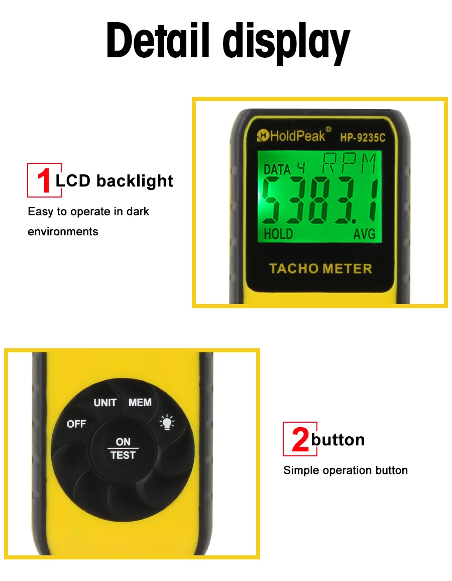 HP-9235C Тахометр используется для измерения скорости или скорости движения. Это идеальный инструмент для измерения скорости вращения контактного или бесконтактного типа.
