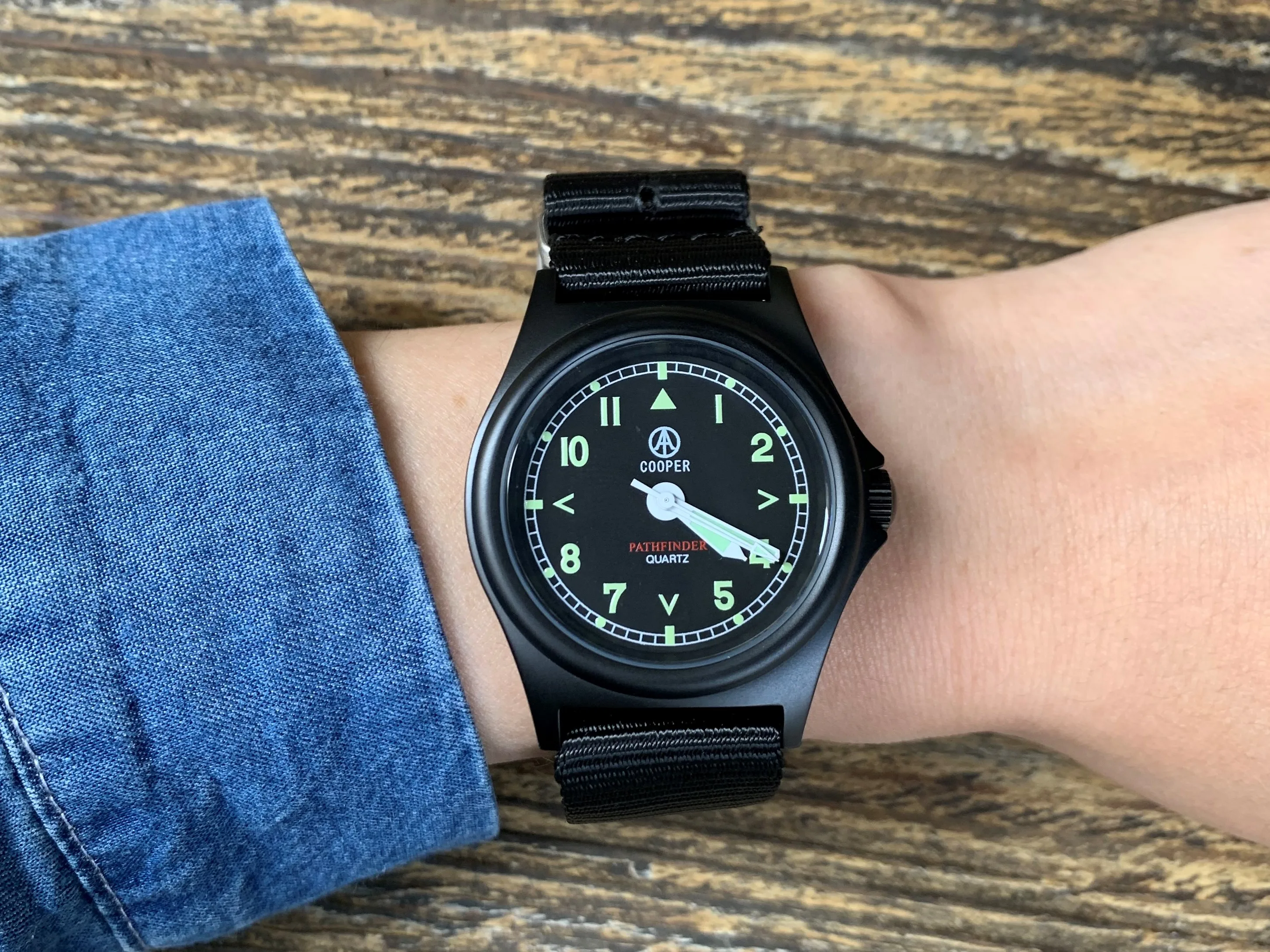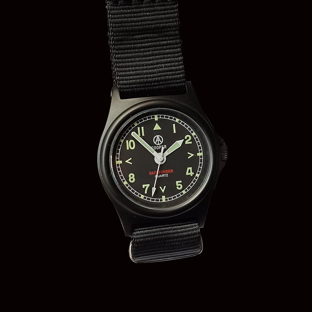 Эти часы были вдохновлены элитным блоком следования британского парашютного полка. Он вдохновлен и улучшает Классический Стиль часов британской армии G10. Ретро циферблат добавляет маркеры стрелок направленного направления. Военные руки меча были использованы вместо палки рук, и Swiss SN1 долгосрочная высокая интенсивность lume была использована для легкого чтения в темноте. Очень точно и легко читать, будь то день или ночь. Этот механизм является подлинным японским механизмом Miyota Super 2035 с высокоточным золотым кварцевым механизмом, водонепроницаемый чехол на 100 м, а часы имеют уникальный Улучшенный антибликовый дизайн. Чехол изготовлен из нержавеющей стали 316L, которая была окрашена песком, чтобы быть не отражающей. Все вещи, которые считают, что Pathfinder является чрезвычайно жестким и прочным инструментом часы.
