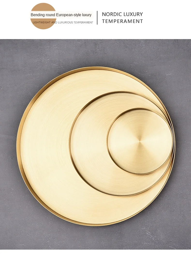 Kitchen Stainless Steel Storage Tray Space Saving Organizer Jewelry Display Plate Round Shape Multifunctional Bathroom Gold