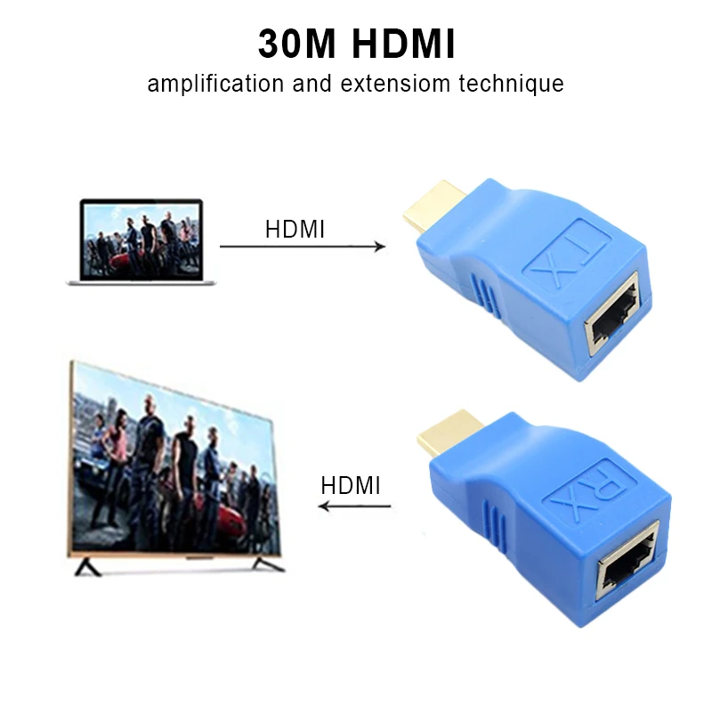 Примените этот удлинитель HDMI с одним кабелем CAT5e/6, чтобы расширить дисплей HDTV до 30 метров 1080p, не только нарушая ограничение длины передачи кабеля HDMI, но laso имеет больше гибкости и удобства в конструкции кабеля.