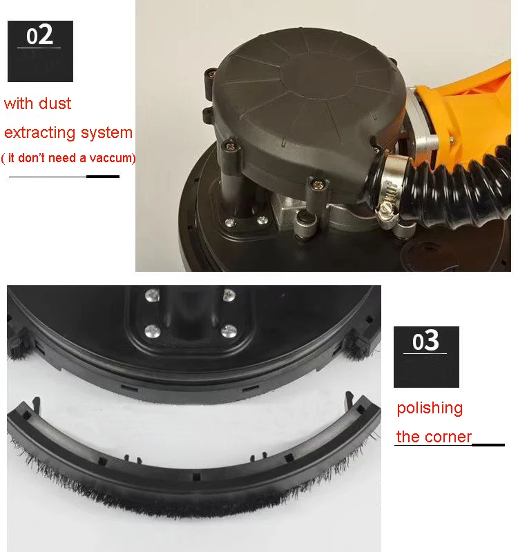 Эта электрическая шлифовальная машина подходит для начинающих, домашних хозяйств или профессиональных шлифовальных работ. Он прочный и крепкий с металлическим корпусом. Он обеспечивает эффективную шлифовку благодаря мощному двигателю и регулируемой переменной скорости. Он прост в эксплуатации со специальной рамкой телескопа и эргономичным дизайном ручек. Разгладьте стену от шероховатой текстуры и неровных ударов