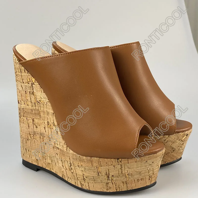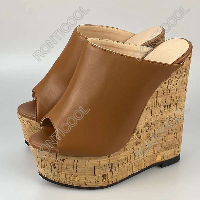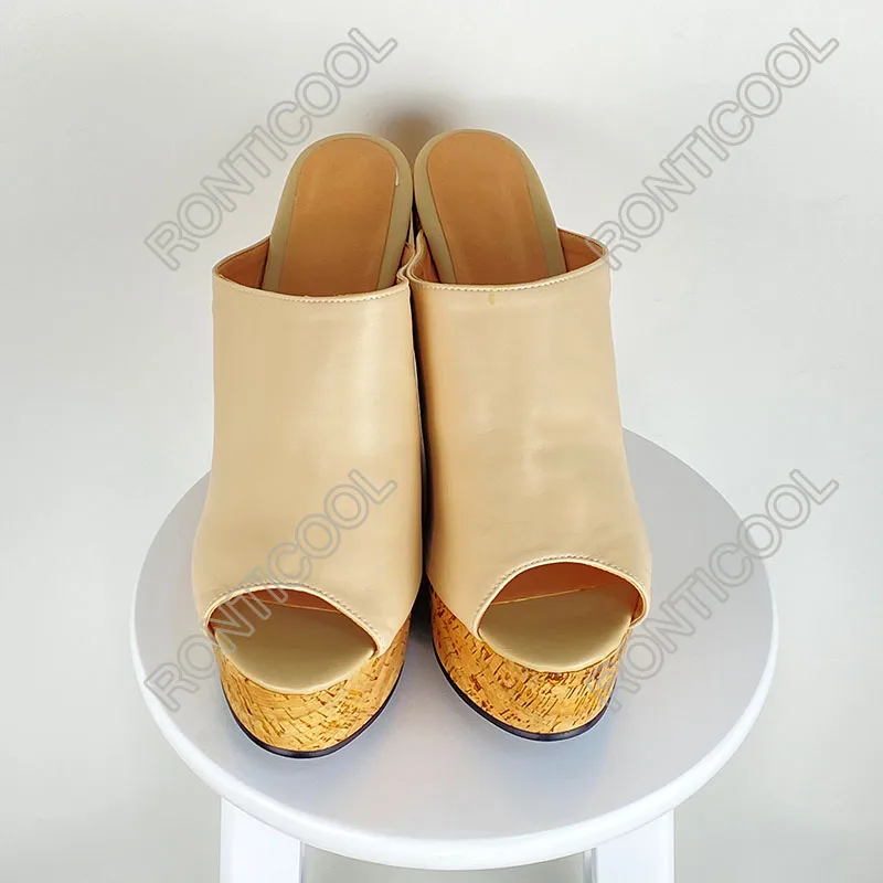 Ronticool/Новые Модные женские босоножки ручной работы на заказ; Пикантные туфли на танкетке и высоком каблуке с открытым носком; Красивая повседневная обувь телесного цвета; Размеры США 5-20
