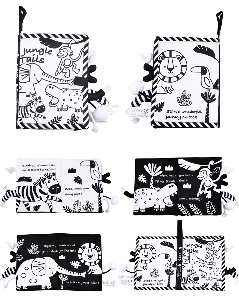 Детская тканевая книга животные хвосты Монтессори Книга Детские игрушки черный белый просветление Мягкая Книга Новорожденные детские книги от 0 до 12 месяцев