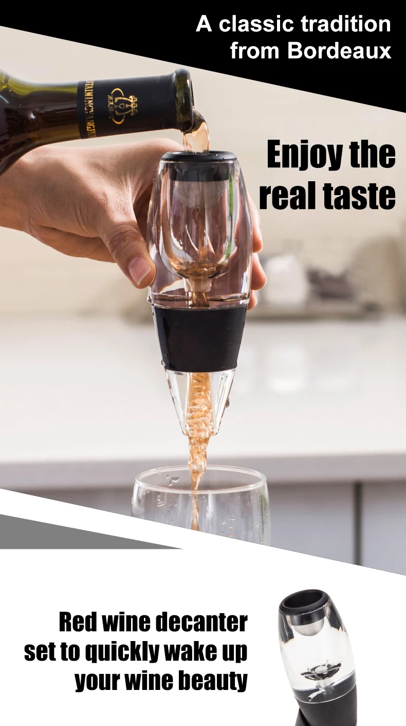 2. Улучшенная аэрация: аэратор вина сочетает в себе аэрационные механизмы традиционных графиновых Воронов и современных аэраторов, чтобы объединить лучшие из обоих миров. Никаких трюков, никаких трюков, просто изысканное вино. Этот уникальный Декантер для красного вина делает любой вкус вина дорогим