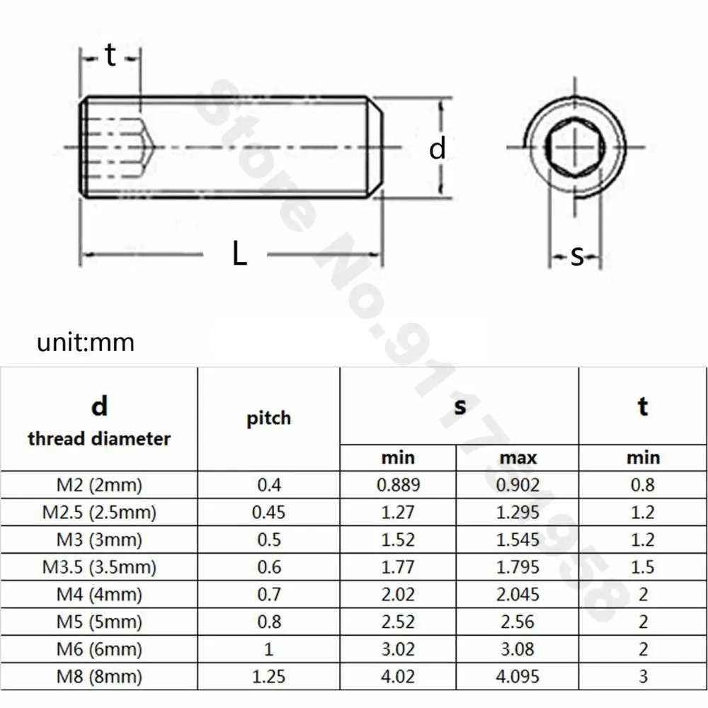M2 (2 мм) / M2.5 (2,5 мм)/M3 (3 мм)/M3.5 (3,5 мм) / M4 (4 мм) / M5 (5 мм) / M6 (6 мм)