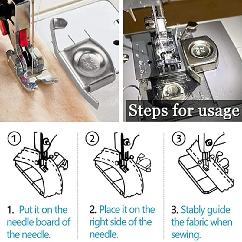 Для прошивки идеально ровные швы по прямым краям и изгибам. Он прост в использовании, и отличный помощник в шитье прямой или круглой линии дорожки. Эта чрезвычайно мощная магнитная направляющая для швов легко монтируется и регулируется в любом положении металлической пластины горла. Это значительно повышает эффективность процесса изготовления одежды.