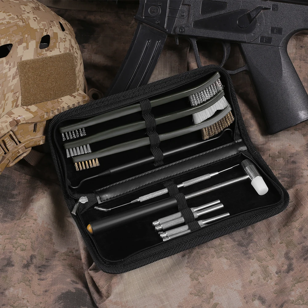 10 шт., набор для чистки тактического пистолета, набор кистей, набор кистей, инструменты, очиститель пистолета, сумка для хранения, принадлежности для охоты