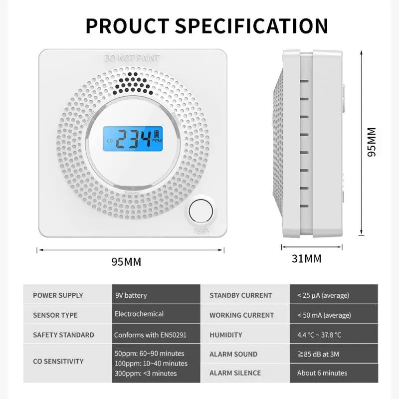 1. Уникальный цифровой ЖК-экран, чтобы показать низкие уровни CO