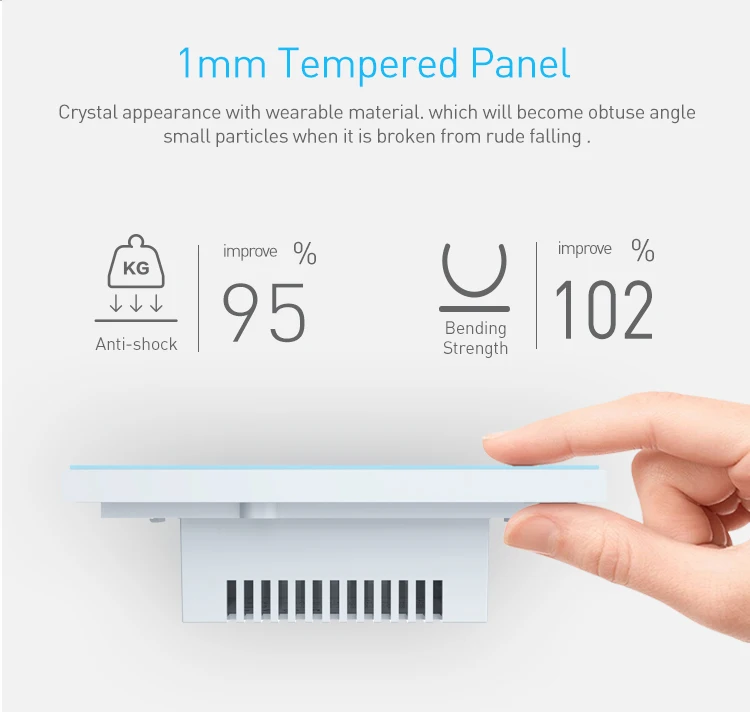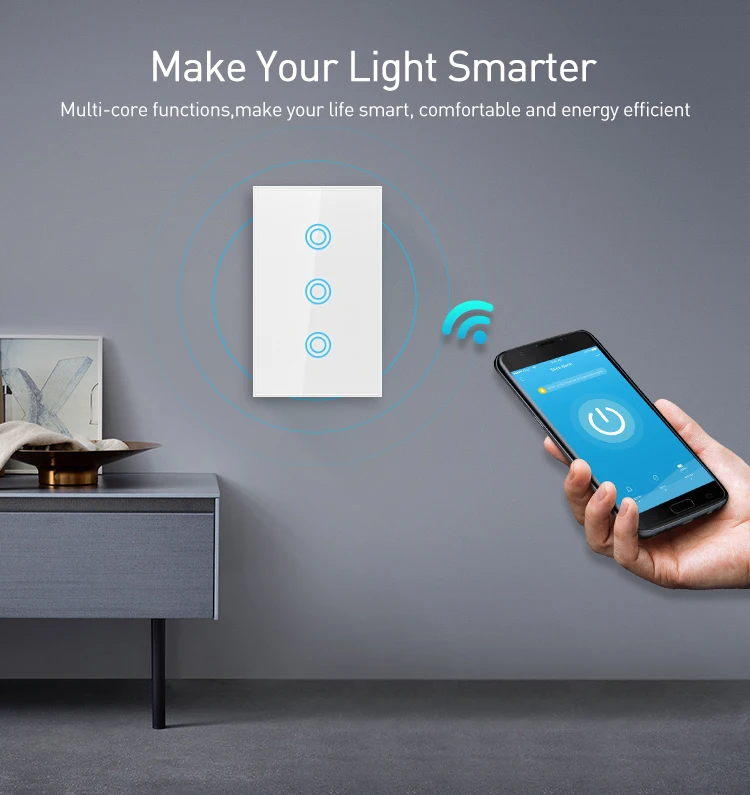 1. Пульт дистанционного управления-позволяет контролировать включение/выключение света в любом месте. 2. Передовые материалы-модный дизайн 1 мм панель из закаленного стекла. 3. Сенсорный смарт-чип-набор обеспечивает немедленную реакцию. 4. Защита от перегрузки-автоматически отключите питание. 5. Интеллектуальное распознавание-Автоматическое Сопряжение. 6. Постоянная память-запоминает последний Статус перед отключением питания. 7. Энергосбережение-вы всегда можете выключить свет с помощью приложения 8. Состояние синхронизации-состояние устройства в режиме реального времени. 9. Светодиодный дисплей в ночное время-низкий светильник, легко включается в ночное время. 10. Установите расписание синхронизации-заданные таймеры автоматически Включите светильник в вашей комнате. 11. Размер продукта (Д x Ш x В):US Stardard 12. Нужны живые и нейтральные провода