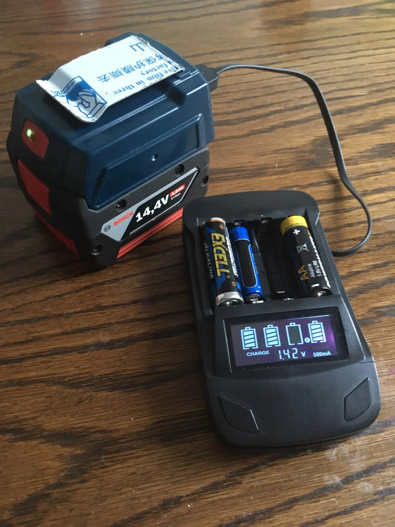 - This product can only charge mobile phones, can't use forBosch batteries.