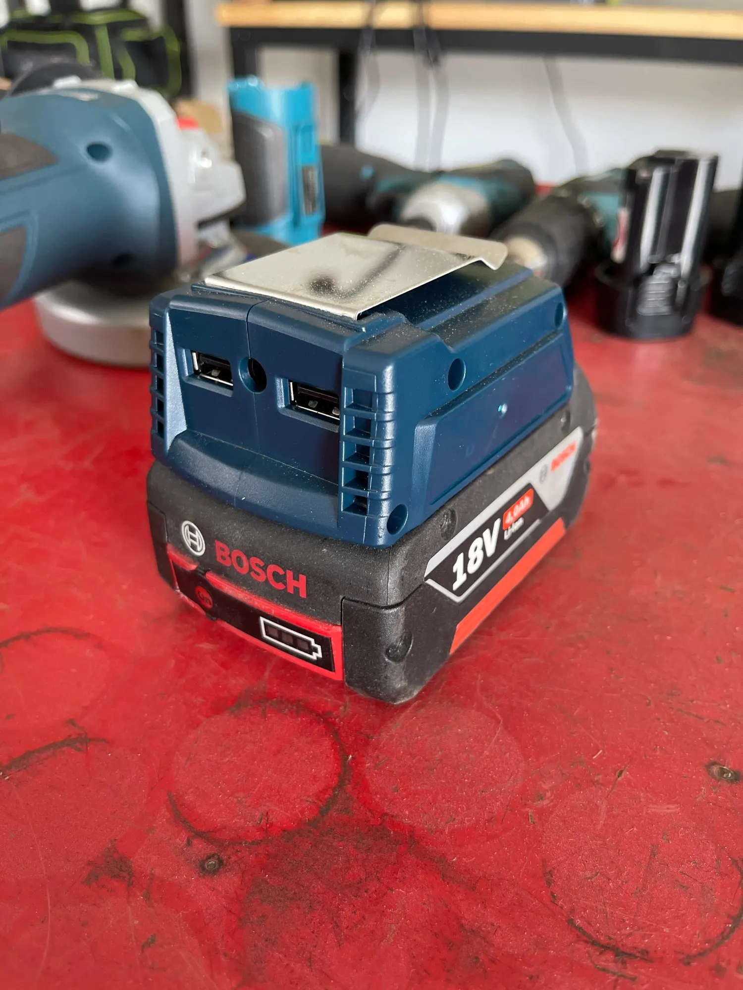 - Turn your 18V 3.0/4.0A Lithium-Ion batteries into a portable power source.