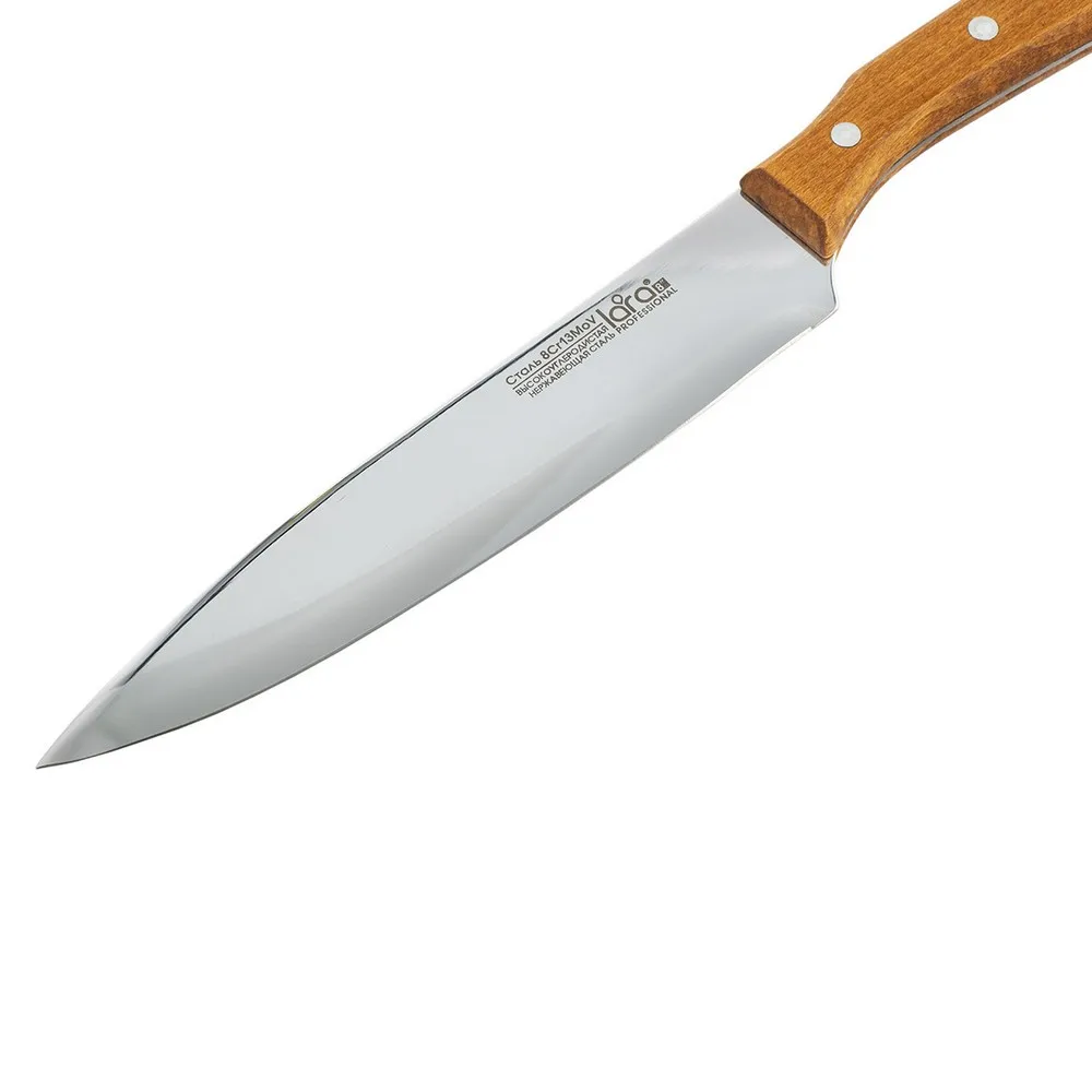 Название бренда LARA Тип Ножи Происхождение Китай Тип ножа Поварские ножи Материал STAINLESS STEEL Толщина лезвия 1,8 мм Длина лезвия 20,7 см Отделка каждого лезвия Сталь, зеркальная полировка Рукоятка Деревянная (буковая) Гарантия 2 годавнешний вид товара