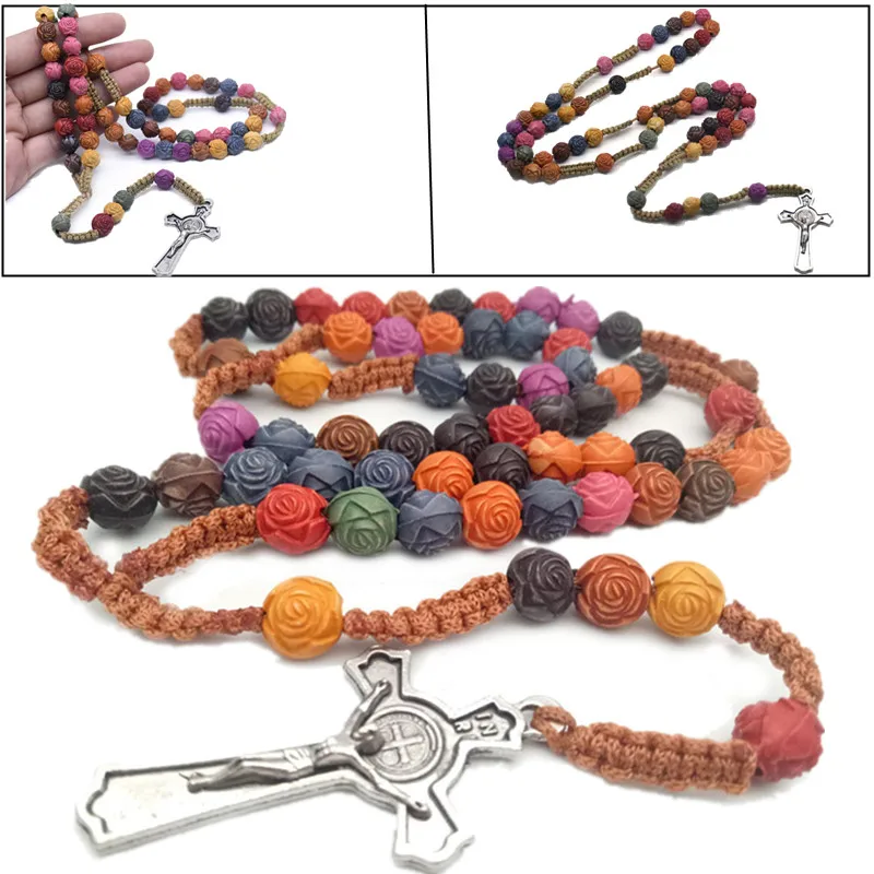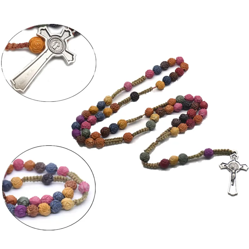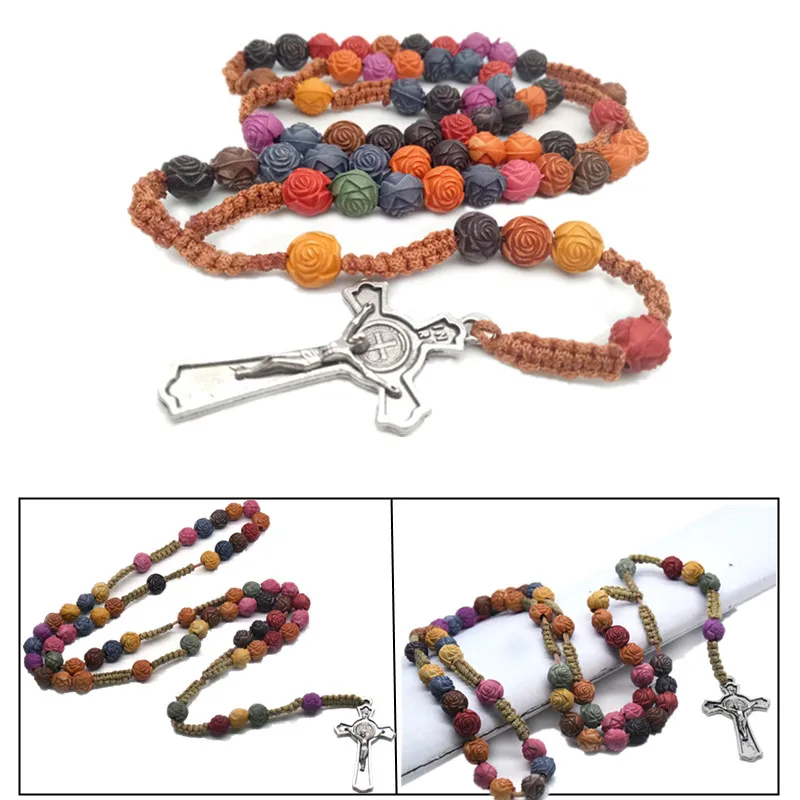 1 ожерелье с крестом из розовых бусин
