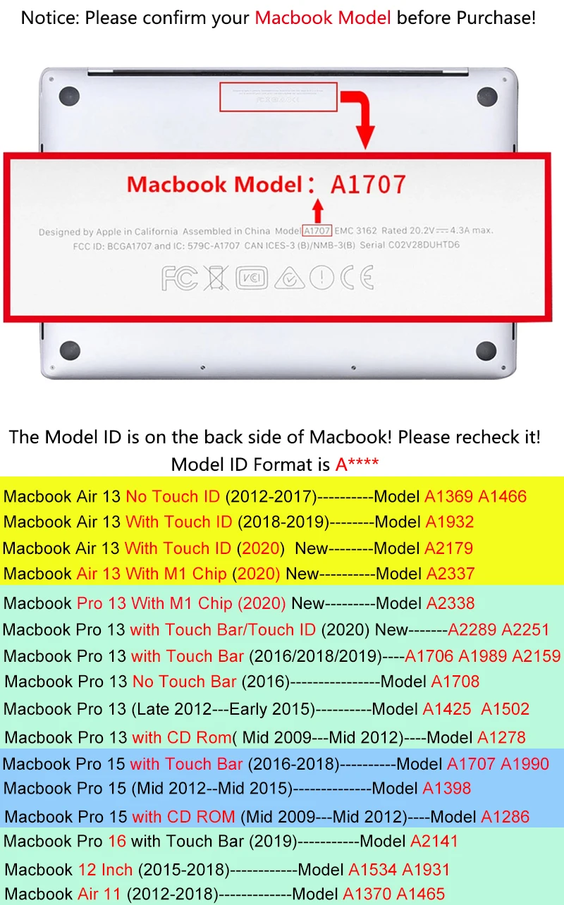 Пожалуйста, проверьте на задней панели вашего macbook. Внимательно проверьте модель вашего macbook и разместите заказ на правильную модель.