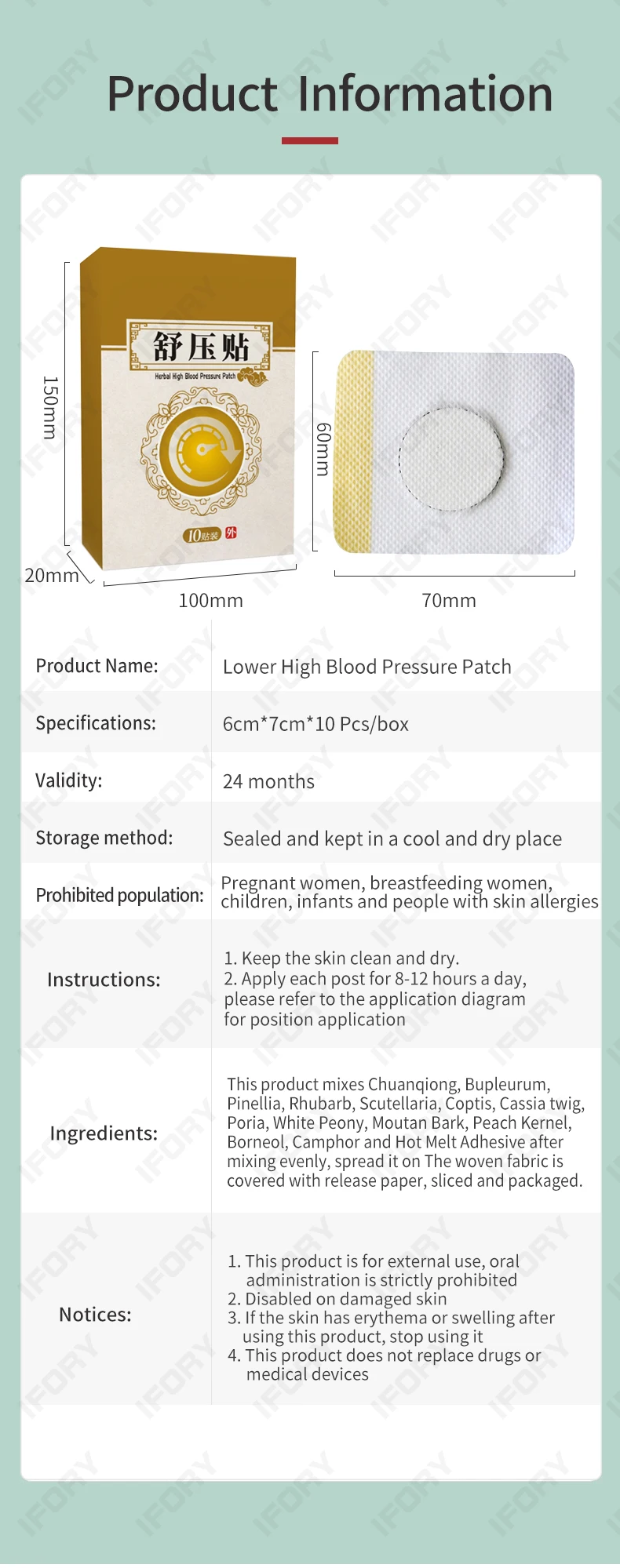 Ifory 10 шт = 1 коробка гипертонии пластырь китайские травяные медицинские наклейки снижения высокого кровяного давления медицинский пластырь для здоровья
