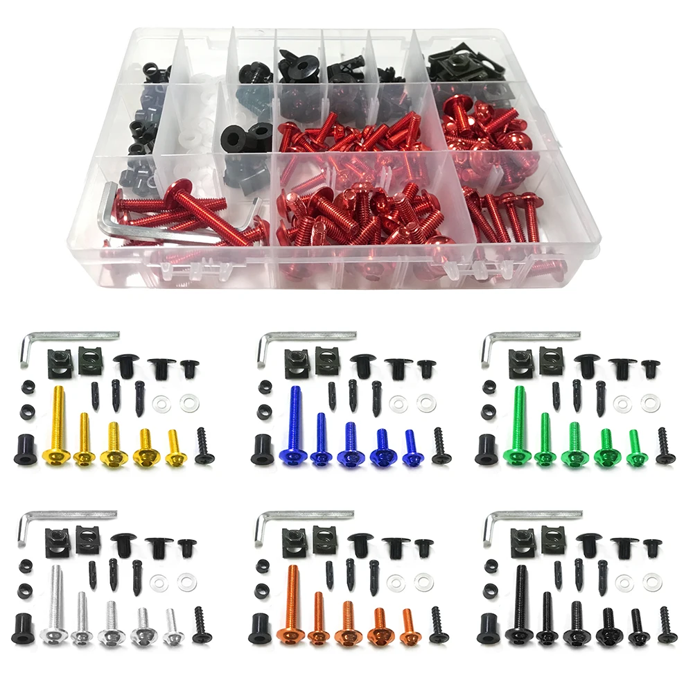 Количество: 195 шт. в коробке цвет: зеленый/черный/синий/красный/золотой/оранжевый/серебристый материал: алюминий оснащение: для Honda, Kawasaki, Suzuki, Aprilia, Ducati, МВ агуста.