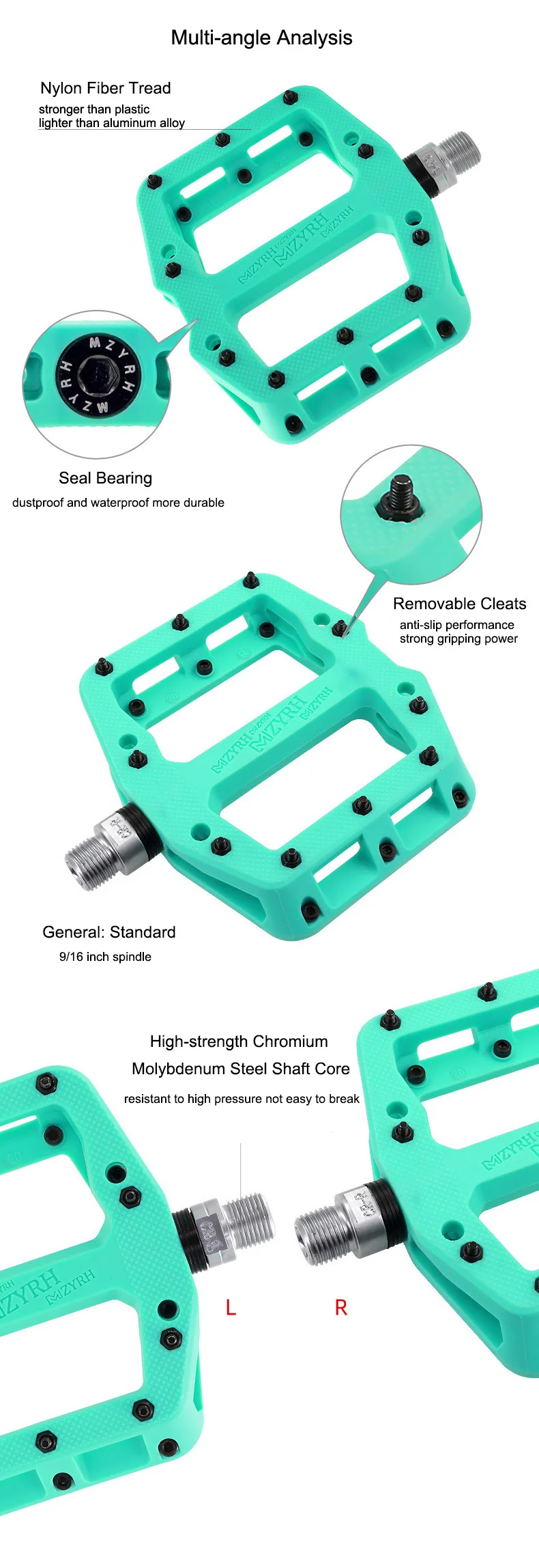 MZYRH велосипедные педали сверхлегкие уплотнительные подшипники нейлоновые молибденовые педали Нескользящая велосипедная педаль прочная Расширенная MTB педали велосипедная часть