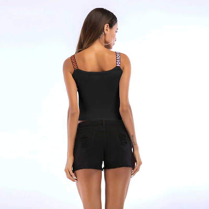 Короткая трикотажная рубашка на бретельках с буквенным принтом, новая модная однотонная Спортивная повседневная майка, женская летняя одежда, приталенная, Chaleco