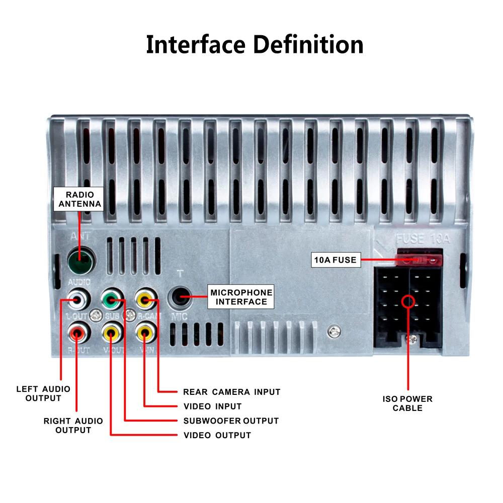 ● Поддержка системы заднего вида: при подключении к камере заднего вида Автомобильный стереомонитор автоматически перейдет к деталям заднего вида и поможет водителю обеспечить безопасную парковку