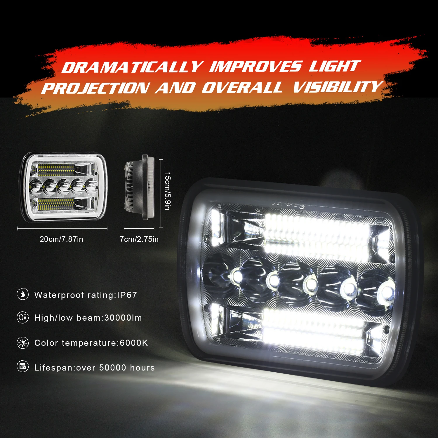 5X7 дюймов 7X6 дюймов светодиодный прожектор, светодиодный светильник DRL с H4, светодиодный прожектор, фара, лампа Hi-Lo, автомобильный светильник, аксессуары для автомобиля