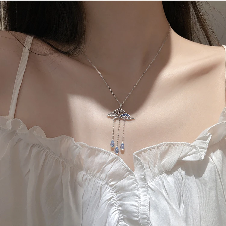 Ожерелье, кулон из стерлингового серебра 925 пробы, ювелирные изделия, цепочки для шеи, водяные облака, колье, ожерелье для женщин, аксессуары, ошейник, подарок kpop